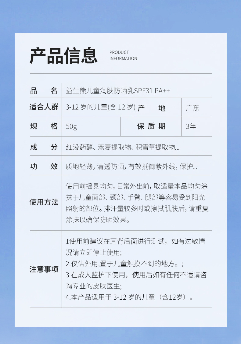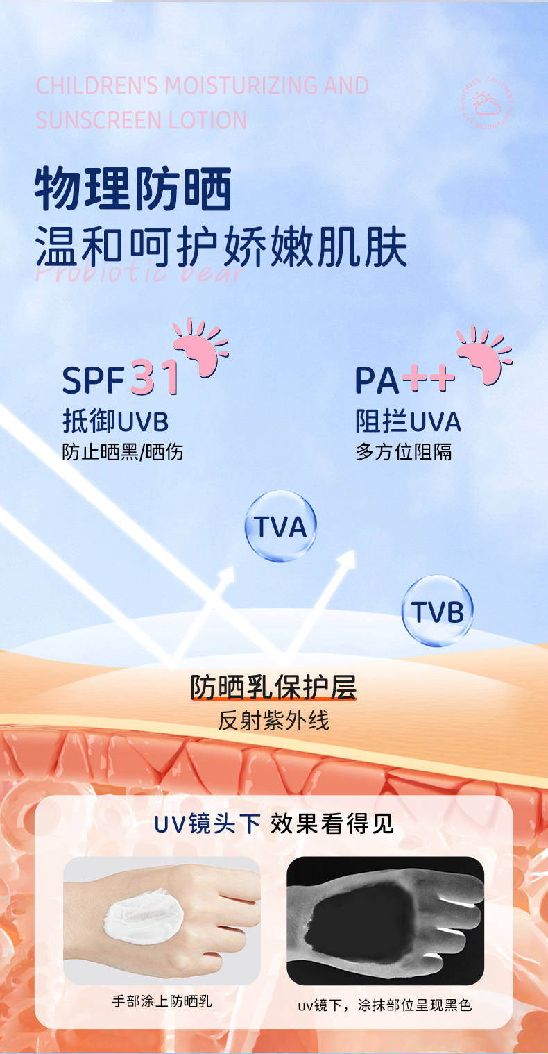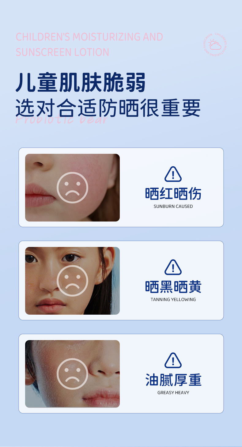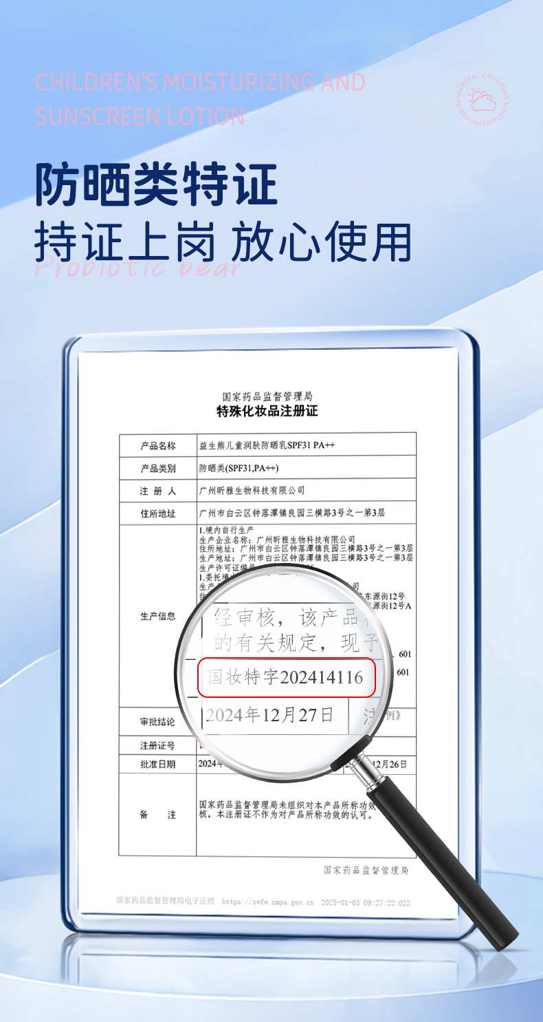[Overseas] Sunscreen Recommendation: Probiotic Bear Children's Moisturizing Sunscreen for Babies, UV Moisturizing Physical, 50g/Style 1 10ea