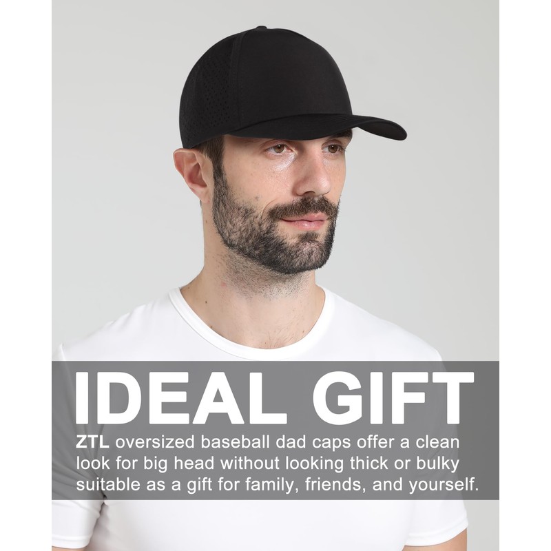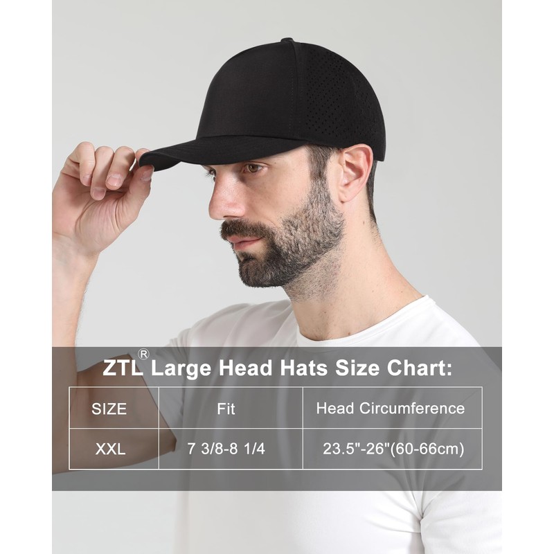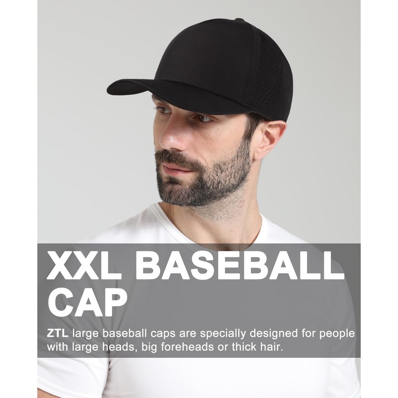 Oversize XL XXL Men Quick Dry Baseball Cap Water-Resistant Performance Laser Cut Mesh Snapback Hat for Big Heads 23.5"-26" Black