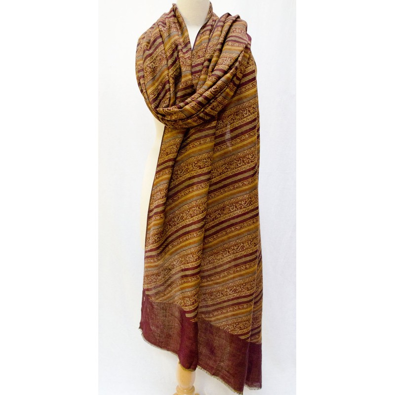 Oversized Paisley Diagonal Stripe Wool Blend Shawl Wrap Stole Scarf Throw Brown Gold