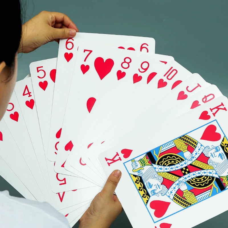 - Portable design: our each card measures L 17.5 cm x W 12.5 cm, is 0.4 mm thick, it is 4 times larger than a normal deck. Friendly for people with low vision, these large cards are easier to hold, you can see them without help or guidance, while bringing more joy to life. Convenient to carry, it is an essential choice for family and travel.