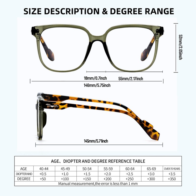 - 【HD Lenses】- Large anti-blue light reading glasses adopt a new generation of high-definition lenses, which are lightweight, scratch-resistant, wear-resistant, and restore true colors. Anti-reflective coating ensures clear visibility under sunlight or office lighting, and scratch-resistant lenses maintain long-term clarity.