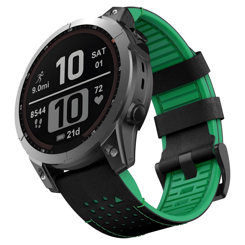 - DOUBLE MATERIAL --- This fenix 7x/fenix 5x replacement sport band is made of genuine leather and silicone which make it soft, breathable, durable and sturdy. The lightweight material will not let your wrist have any burden even if you are exercising. The bands is reinforced with fastening technology and will not fall off like other straps.