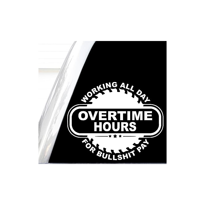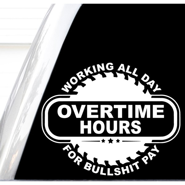 Overtime Hours Decal, Working All Day for Bullshit Pay Sticker, RVA, State of Virginia, Proud Blue Collar American, Living in The New World with an Old Soul, OSHA Violation (H 5 by L 6 Inches, White)
