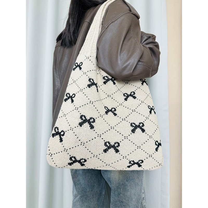Ovida Bow Tie Crochet Bags for Women Summer Travel Beach Tote Bag Y2k Aesthetic Knit Bag Fairy Grunge Accessories