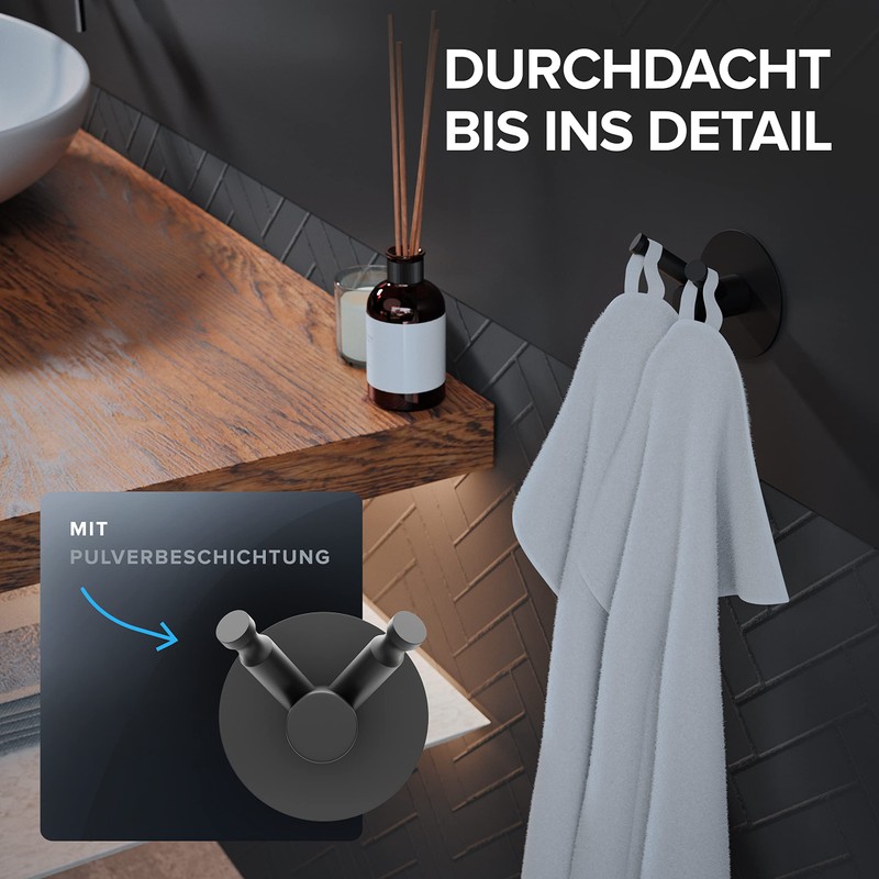 - Easy wall mounting without drilling: you can easily attach the ovimar multi-function towel hook made of black stainless steel to tiles, marble, glass, metal, composites and painted surfaces