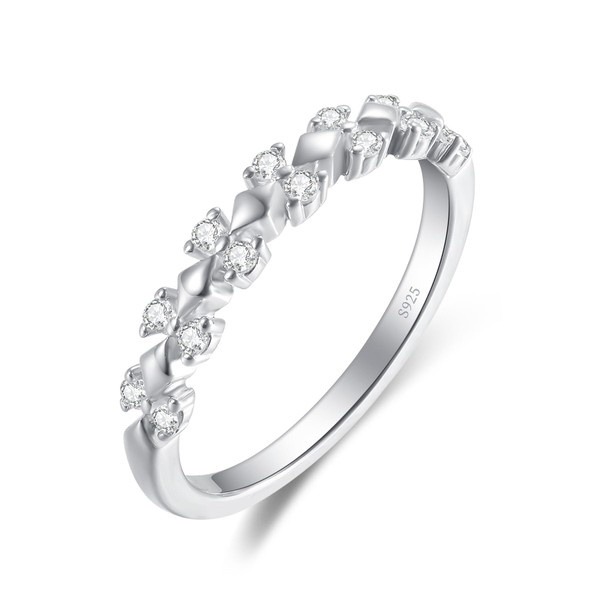 OVIMIA Bow Moissanite Wedding Bands for Women, Half Eternity Ring 925 Sterling Silver Stackable Ring Size 9