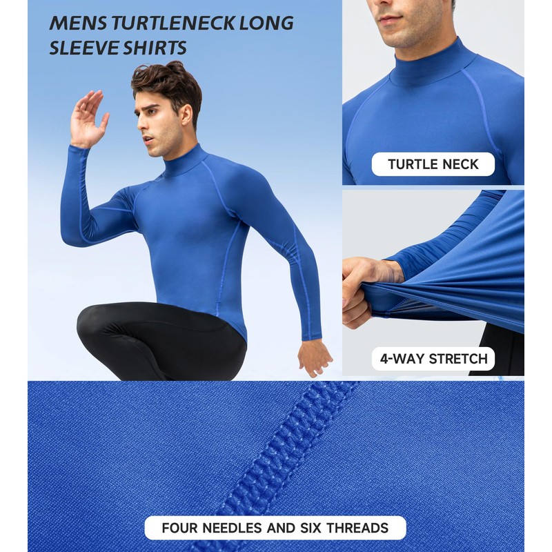 OVIYEGAIN Blue Turtleneck Compression Shirts for Men Sports Dry Fit Undershirt Athletic Workout Base Layer Running Tops