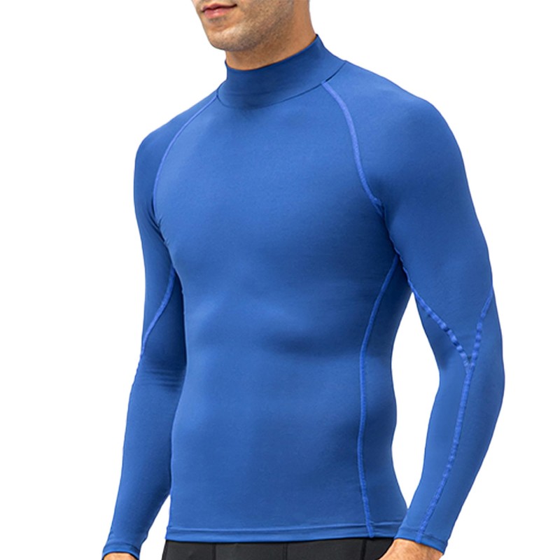 OVIYEGAIN Blue Turtleneck Compression Shirts for Men Sports Dry Fit Undershir...