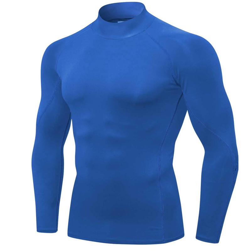 OVIYEGAIN Blue Turtleneck Compression Shirts for Men Sports Dry Fit Undershirt Athletic Workout Base Layer Running Tops