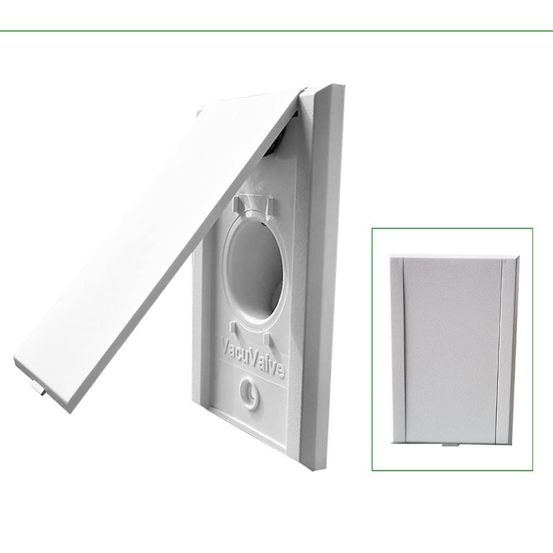 - Central vacuum inlet valve, bottom door style, white finish