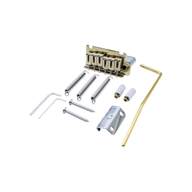 OVSAL 10.5mm Gold Electric Guitar Bridge 2-Point tremolo bridge with Zinc Alloy Saddles and Stainless Steel Plate Electric Guitar Parts for 6 String Strat Stratocaster