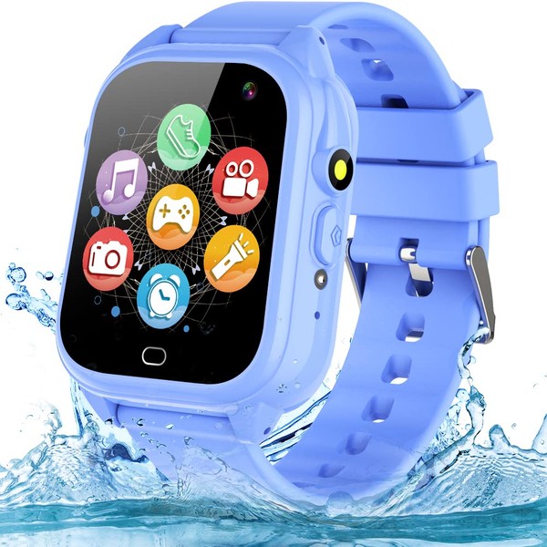 OVV Kids Waterproof Smart Watch Boys Girls Age 3-12 Learning Systems Toys with 26 Game 1.44'' HD Touch Screen Music Player Camera Video Recorder 12/24 Hr Clock Pedometer Alarm Torch Calculator