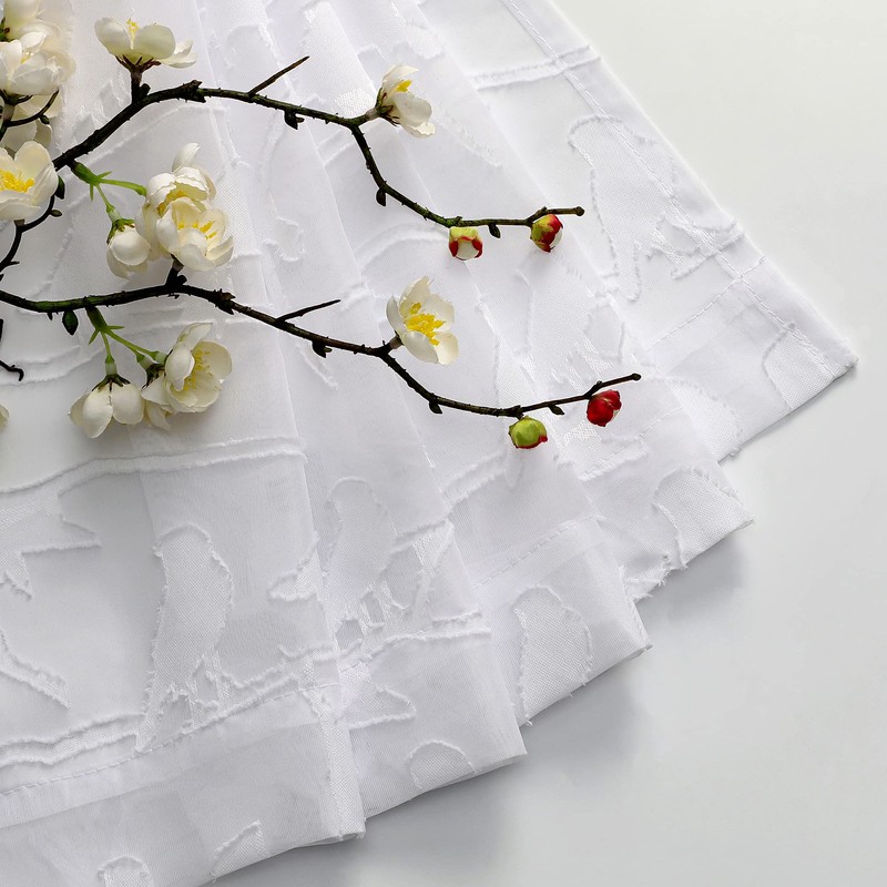- Fabric Characteristics: 100% polyester jacquard pattern fabric, soft & durable and very pleasant to touch. Sunshine can get through sheer white curtains, let you embrace the sunshine while keep a bit of privacy. Exquisite floral jacquard on semi sheer curtains can add a pretty soft and natural look to your windows. It will transform your room from ordinary to extravagant
