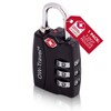 - The safest travel luggage locks with open alert display - double security: Unlike 'imitation' padlocks - TSA Travel Sentry Approved travel locks are made from the most robust zinc alloy metal - making it almost impossible to cut or crack them with conventional tools. In addition, you can set combination locks >1,000 combinations with the three-digit code combination. And weatherproof.