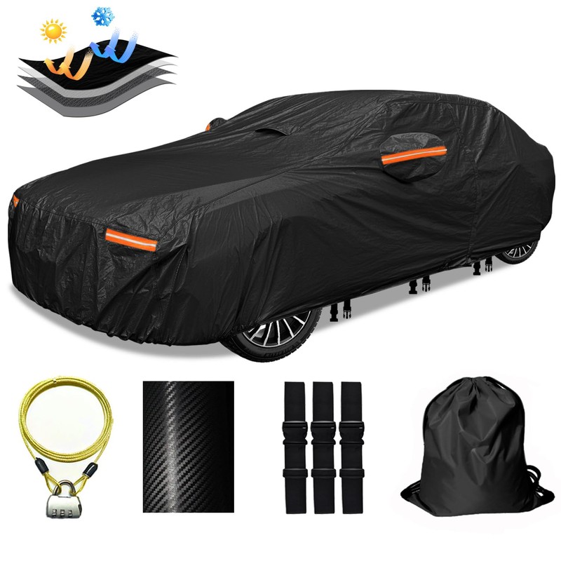 OWEEIO 30 Layers Car Cover for Automobiles All Weather Waterproof, Outdoor Snowproof UV Protection Windproof, Door Zipper, Soft Cotton, Heavy Duty Universal Car Covers, (Black, Fit Sedans 181"-190")
