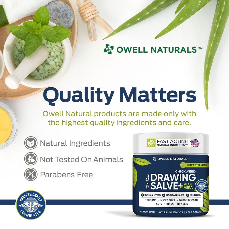 OWELL Naturals Chickweed Salve 4 oz- Drawing Salve with Aloe Vera for Boil & Cyst, Poison Ivy/Oak, Skin Disorder, Irritations, Burns, Minor Cuts, Dry Skin, Itching