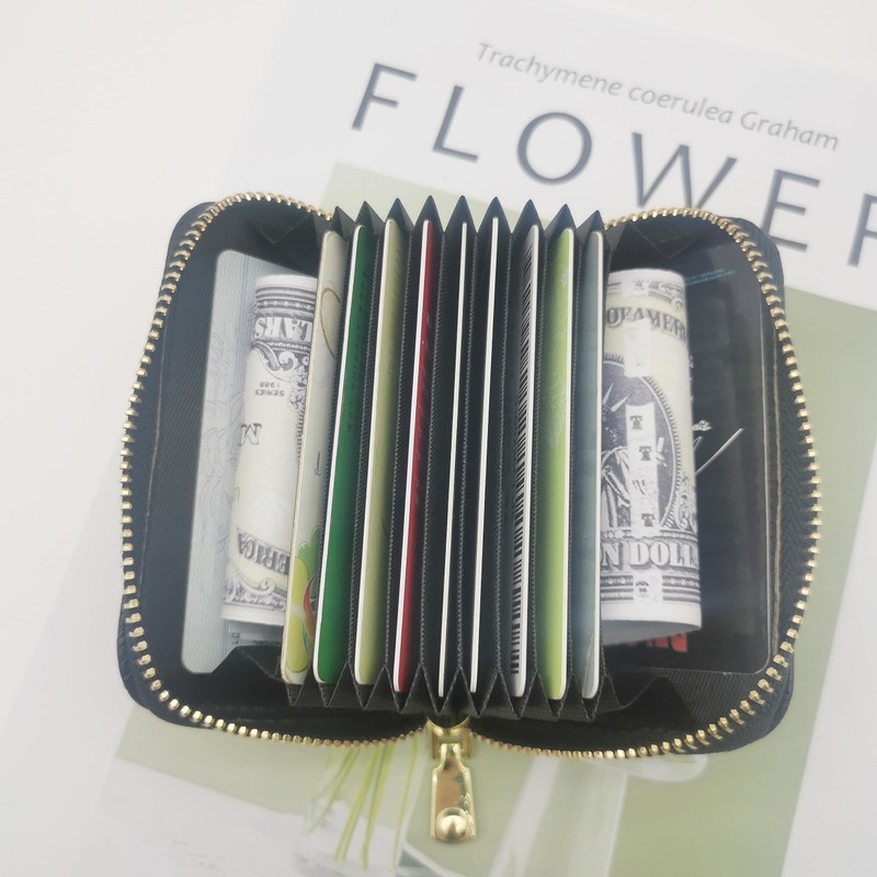 - Fold Accordion Style Ladies Card Holder :This slim card holder for women can be widely used to be credit card holder & money cash wallet&ID card holder. Smooth stainless steel zipper and quality leather material stands out from common card purse