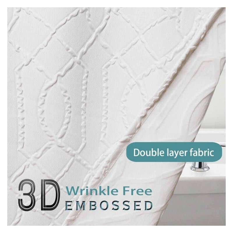 - 【PREMIUM QUALITY】OWENIE white shower curtain made of superior 100% polyester water resistant fabric, thickness textured and soft hand feel. Our shower curtain is wrinkle free,eco-friendly, skin-friendly, dry quckily, drapes beautifully. The new embossed technology makes this 3d modern pattern very natural and last for a longer time.