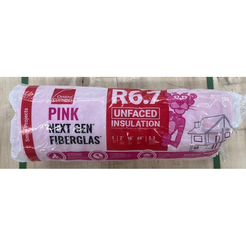 1 Roll - Owens Corning Pink EcoTouch Insulation R-6.7 Roll 2 In Thick 16in W 5.3 sq ft