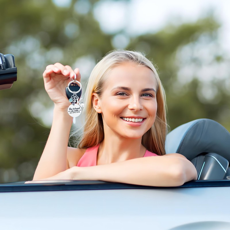- Unique Design: The keyrings have crystal pendant and initial letters names pendant. The powerful inspirational quote "She believes she can do it", inspire girls and women to believe in themselves and face all difficulties bravely