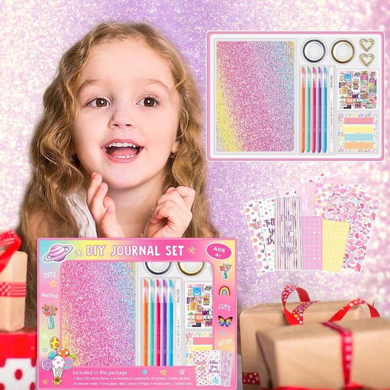 - DIY Journal Kit: This journal kit including everything for writing diary or creating scrapbook. It's an enchanting toy set for girls aged 6-13, it will be the best way to record their beautiful memories