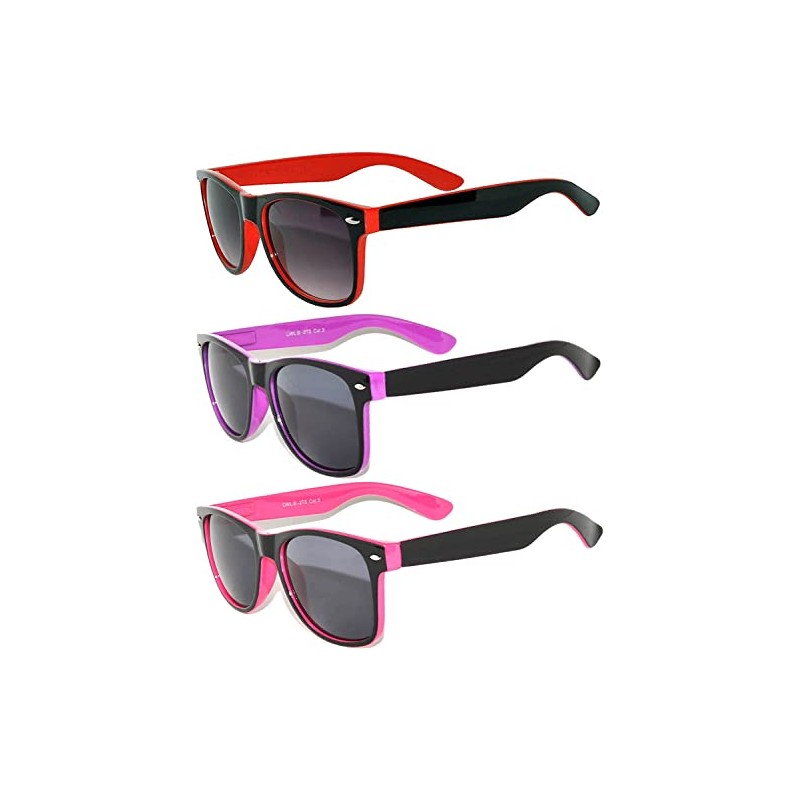 OWL 3 Pack Two Tone Vintage Sunglasses Pink, Red, Purple Frames