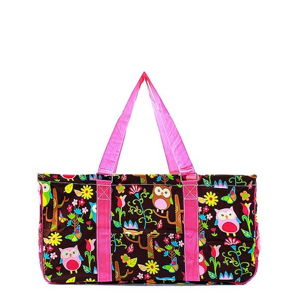 Owl Floral All Purpose Large Utility Bag Collapsible Wire Frame Pink