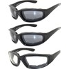 OWL Motorcycle Padded Riding Glasses Clear and Smoke Lens Mens Womens 3 Pack Sunglasses