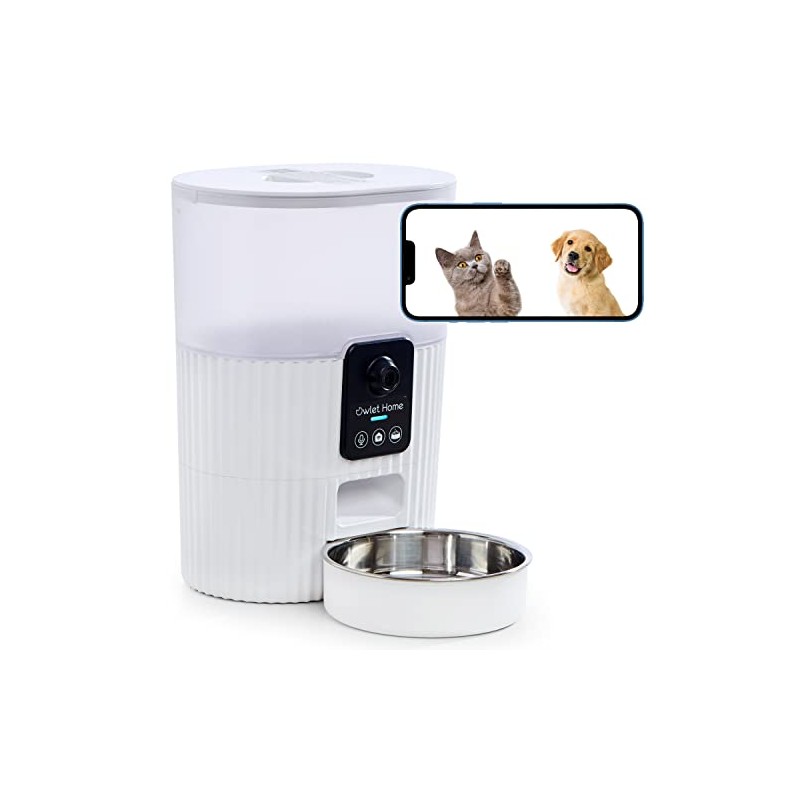 Owlet Home Smart Automatic Pet Feeder with 1080P HD Camera for Cats & Dogs (3.5L), WiFi, Live Video, Auto Night Vision, 2-Way Audio, Works with Alexa & Google Assistant, Motion Alert, No Monthly Fee