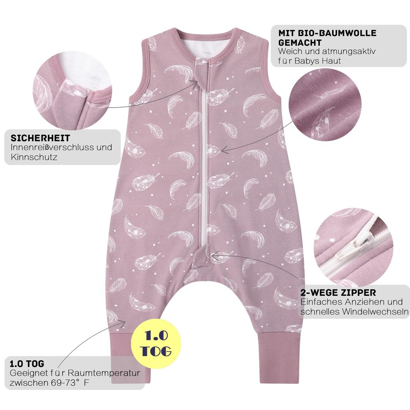 - Versatility for all year round. Designed for all seasons, this 1.0 tog baby sleeping bag with legs ensures that your child sleeps comfortably and comfortably all year round. Say goodbye to annoying changing of bed linen