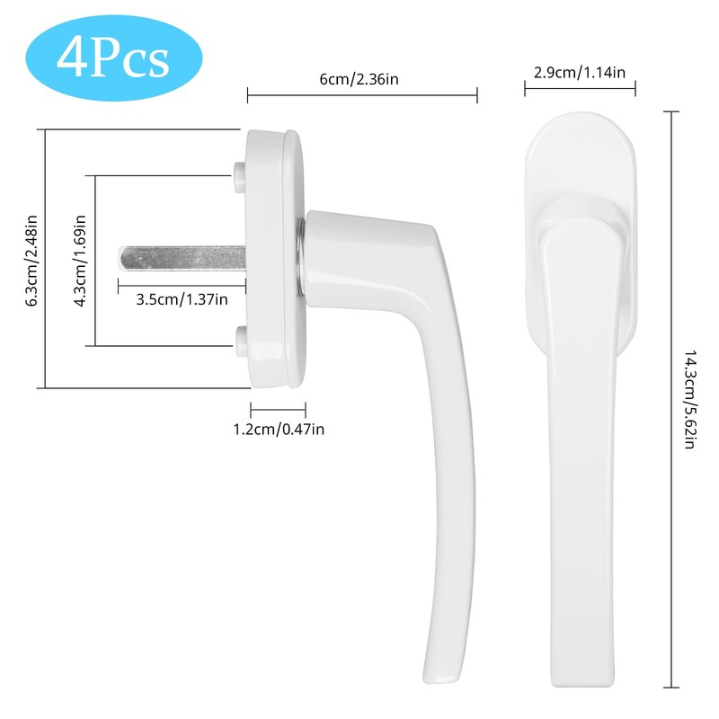 OWLMATE Set of 4 Window Handles, White, Window Lock, Window Handles, Lockable Without Locking Cylinder, in Pin Length 35 mm, Door Handles for Windows, Patio Doors and Balcony Doors