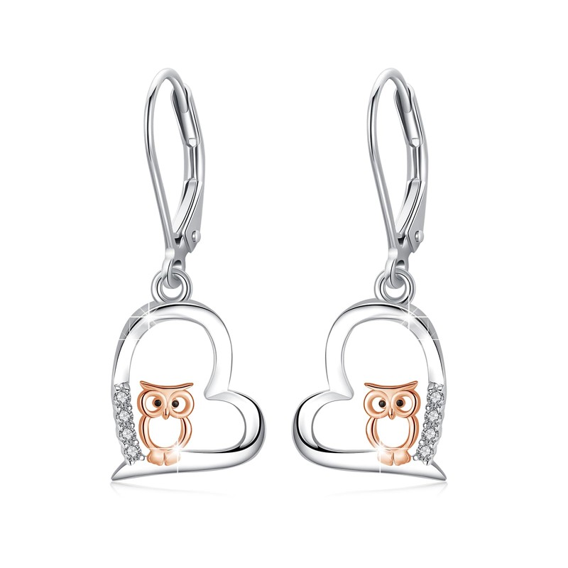 Owls/Horse/Raccoon/Fox/Cat Earrings 925 Sterling Silver Heart Earrings Hanging Earrings Rose Gold/Black Owls Jewellery Gift Hypoallergenic Earrings for Girls Women Children, Sterling Silver