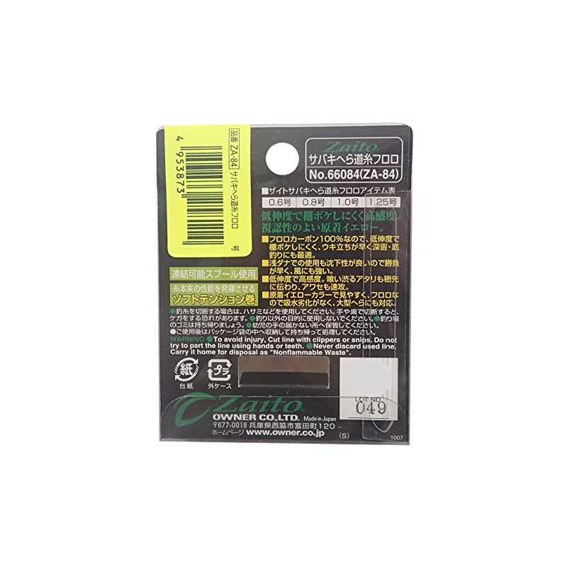 OWNER 66084 Fluorocarbon Line Zite Sabaki Spatula Line 16.9 ft (50 m) 0.6 No. Yellow