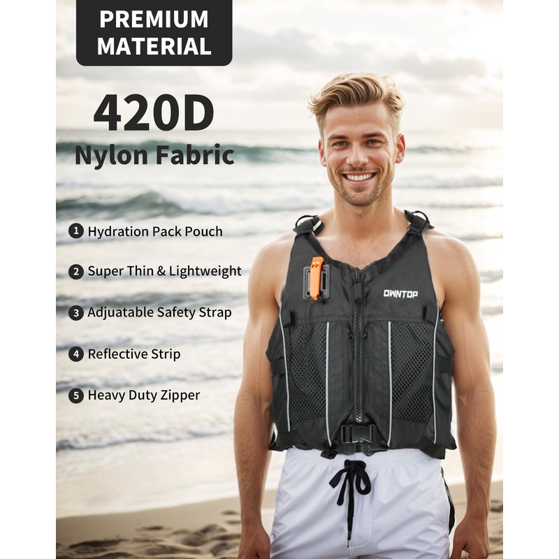Owntop Buoyancy Aids Teens Adults with Hydration Pack, Whistle, Dual Mesh Pockets | Adjustable Buoyancy Vest Jacket | Swim Vest Unisex for Paddleboarding, Kayaking, Fishing, All Watersports
