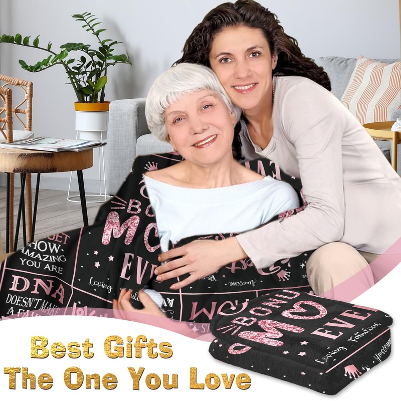 - UNIQUE BONUS MOM GIFT IDEAS: These best bonus mom blankets are perfect for cozying up on the couch, enjoying picnics in the park, or adding a touch of warmth and love to any room.