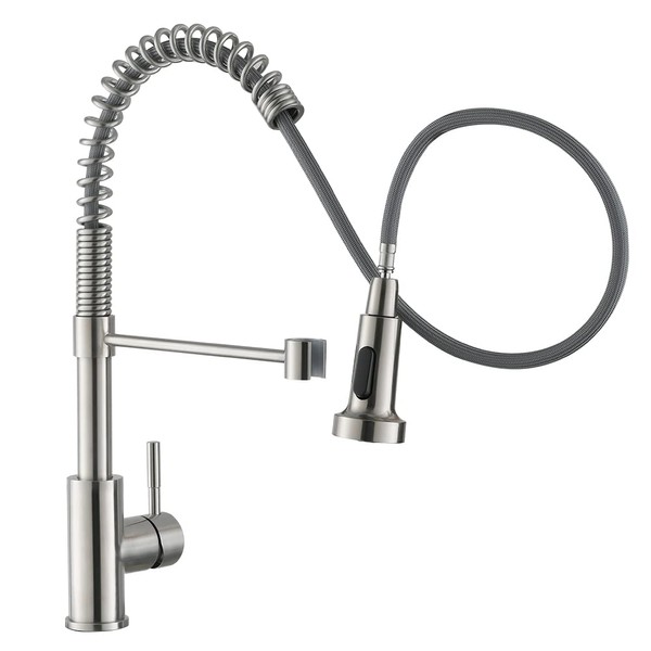 OWOFAN Kitchen Faucet Low Lead Commercial Solid Brass Single Handle Single Lever Pull Out Pull Down Sprayer Spring Kitchen Sink Faucet, Brushed Nickel Kitchen Faucets 866053SN
