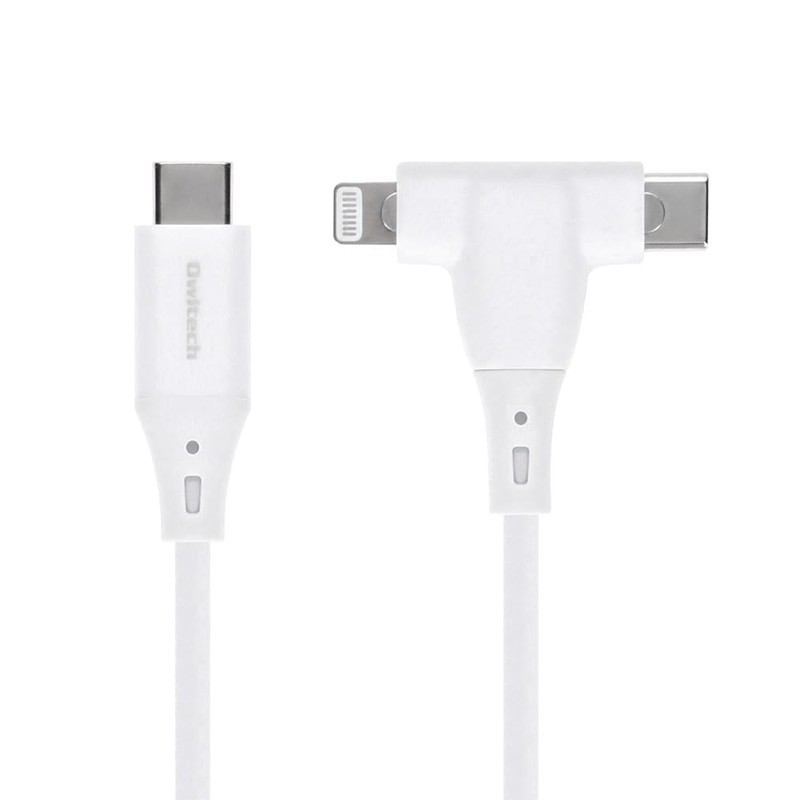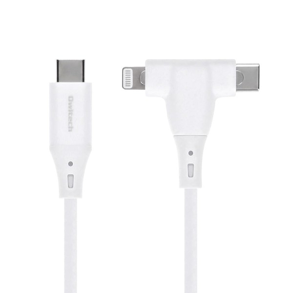 Owtec OWL-CBSCLC10-WH 2-in-1 Cable, Type-C to Type-C/Lightning Compatible, MFi Certified, PD60W, Fast Charging, Data Transfer, 480Mbps, 3.3 ft (1 m), White