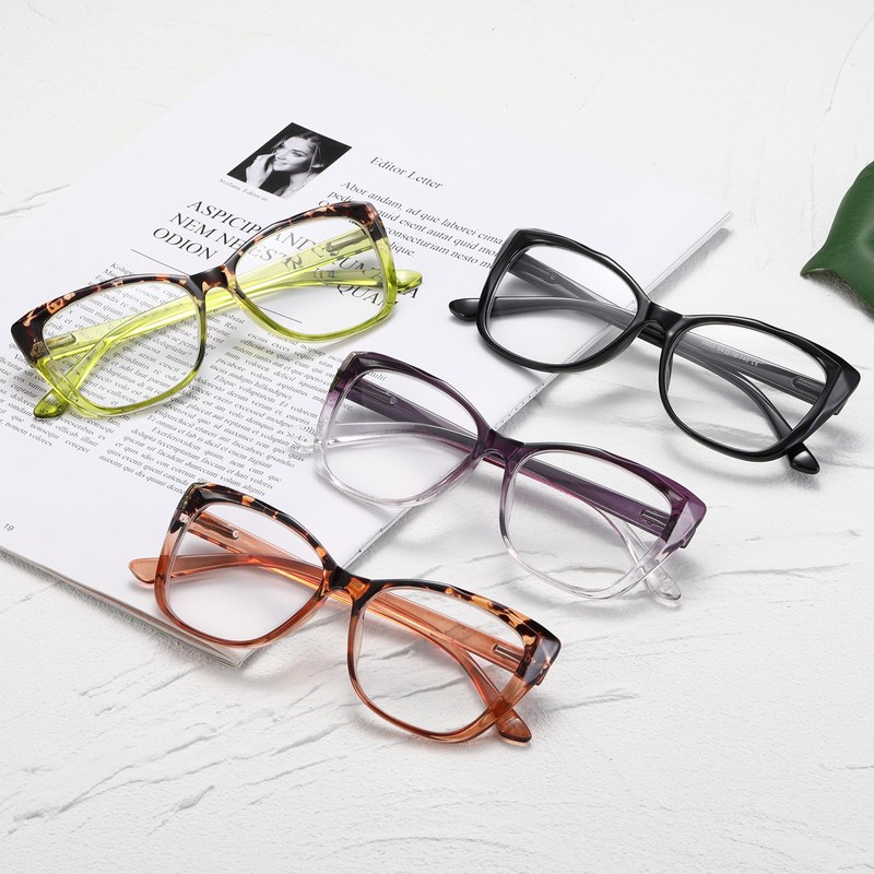 OWTXIS 4 Pack Fashion Cat-Eye Reading Glasses for Women, Lightweight Oversized Readers Trendy Eyeglasses +2.50