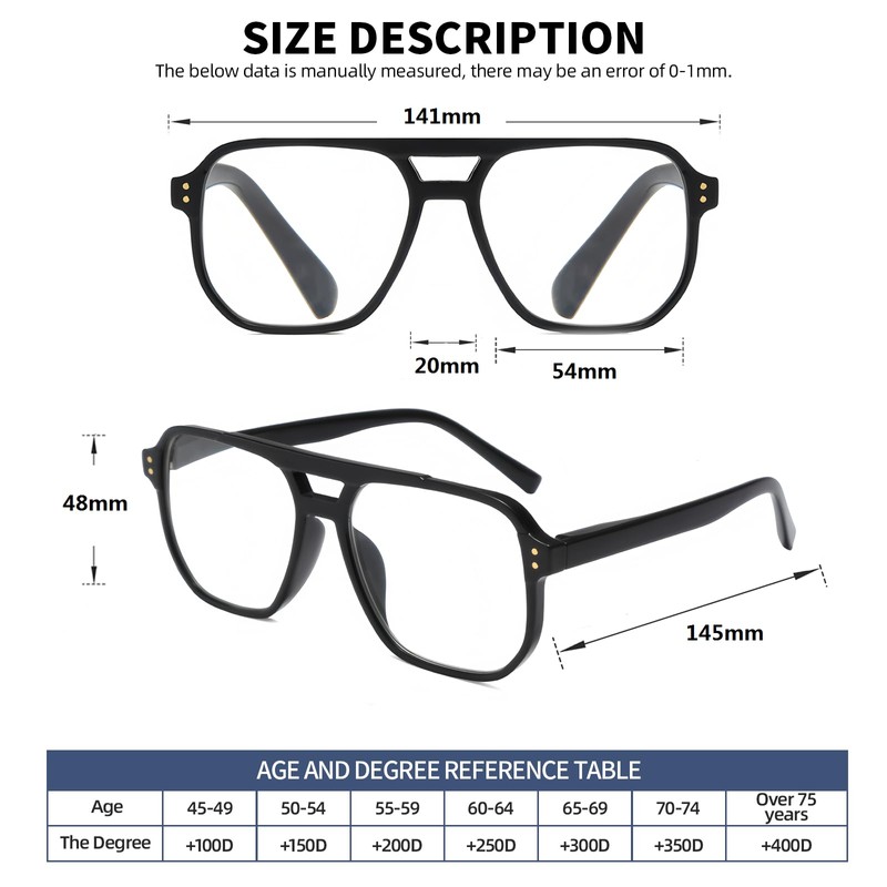 - 【OVERSIZED COMFORT FOR ALL-DAY WEAR】Aviator reading glasses designed with a large frame to provide full coverage and reduce peripheral light interference. The lightweight frame material and flexible spring hinges ensure a snug, pressure-free fit for extended wear.