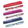 OWTXIS Pocket Reading Glasses with Pen Clip Case - Slim Mini Compact Readers Portable Spring Hinge Eyeglasses (Red, Purple, Blue, +2.50)