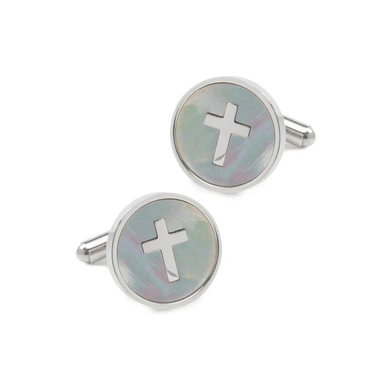 Ox & Bull Trading Co Cross Mother of Pearl Stainless Steel Cufflinks