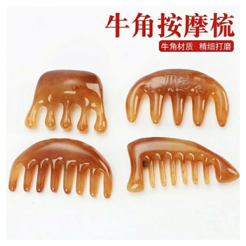 Ox Horn Massage Brush & Gua Sha Tool Resin Dao Chi Hand Shape 10ea