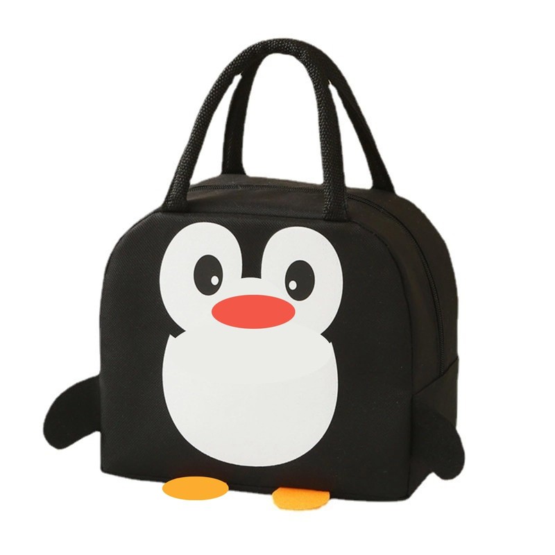 Oxford Cloth Felt Cartoon Lunch Bag with Handheld Lovely Thermal Insulation Multi Functional Large Capacity Lunch Bag Penguin Pattern (Black)