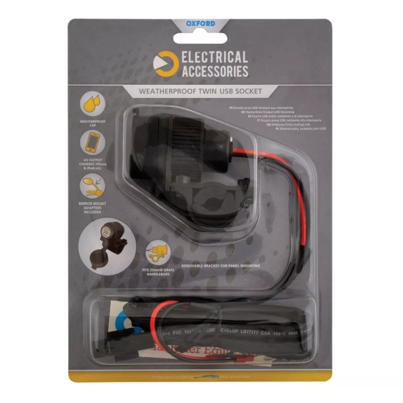 Oxford EL102 Weatherproof Motorcycle Dual Port USB Charger (5V 2Amp)