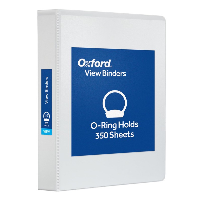 Oxford Ring Binders, 1.5" Round Ring Binders, View Binder, Covers on 3 Sides, XtraLife Hinge, Non-Stick, PVC-Free, White, 350 Sheet Capacity (1002547)