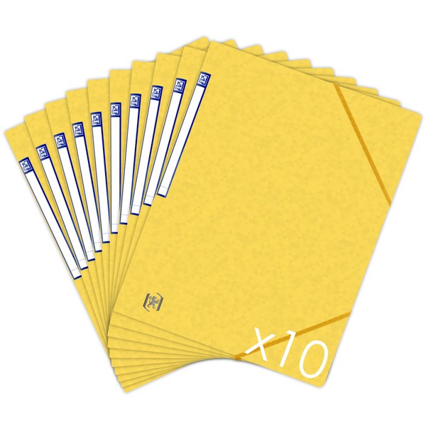 Oxford TopFile+ Pack of 10 Cardboard Folders Without Flaps with Elastic Bands A4 Format Yellow