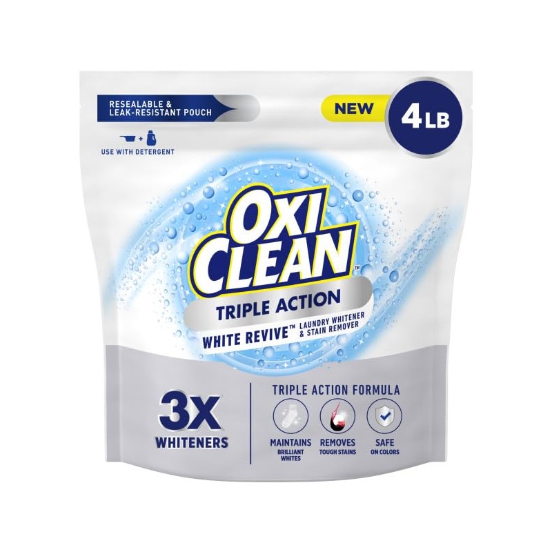 - OxiClean Triple Action White Revive, Whitener and Stain Remover Powder, Use with Detergent, 4 lb