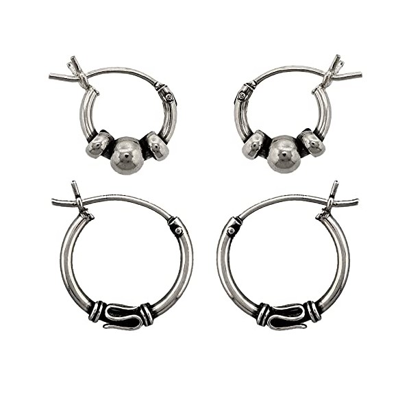 Oxidized Bali Hoop 2 Pair Earring Set in Sterling Silver