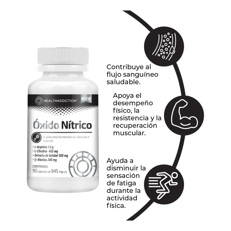 Mejora tu rendimiento físico con Óxido Nítrico, un suplemento diseñado para optimizar la circulación sanguínea y maximizar tu desempeño deportivo. Con ingredientes como L-Arginina y L-Citrulina, este producto es ideal para quienes buscan aumentar su resistencia, fuerza y recuperación muscular.