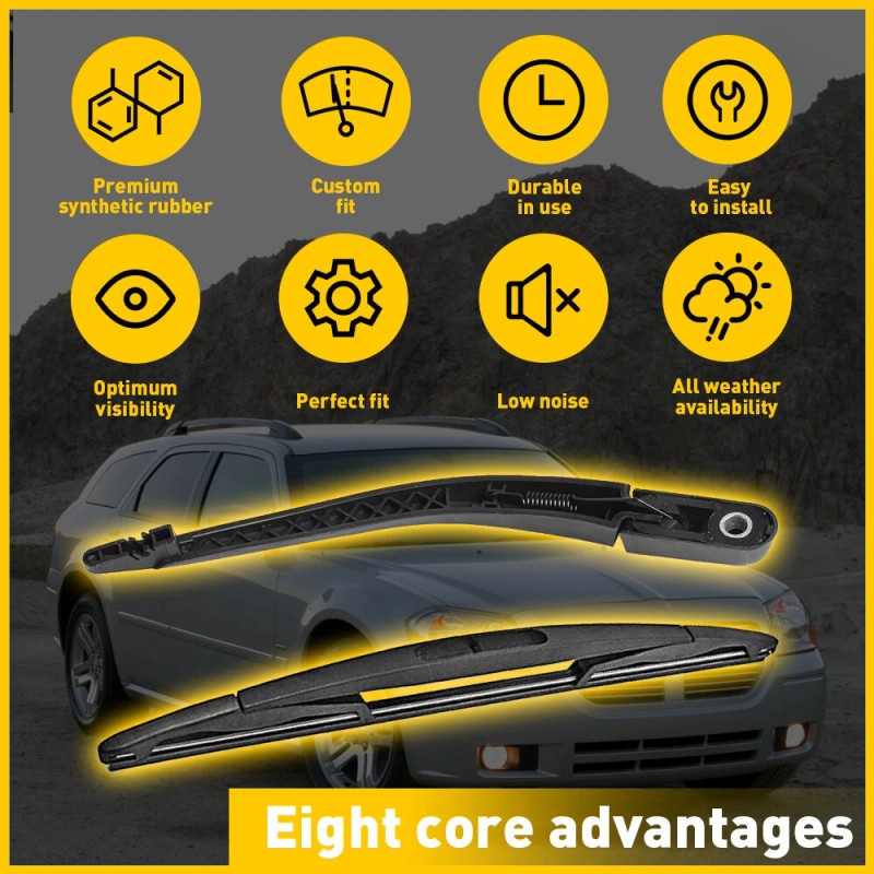 - The rear wiper blades with coated wiping edge feature wear resistant natural rubber to ensure smooth and quiet operation,and extend its long service life.